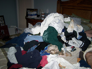 I did manage to get to it today. Here is what my bed looked like at 11 a.m. this morning, after I folded and put away all that laundry.